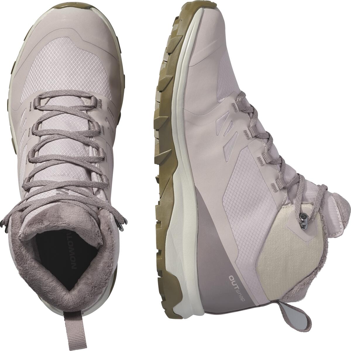 Buty damskie zimowe Salomon OUTSNAP WATERPROOF Etherea / Iron / Coyote Brown – lekkość, ciepło i wodoodporność