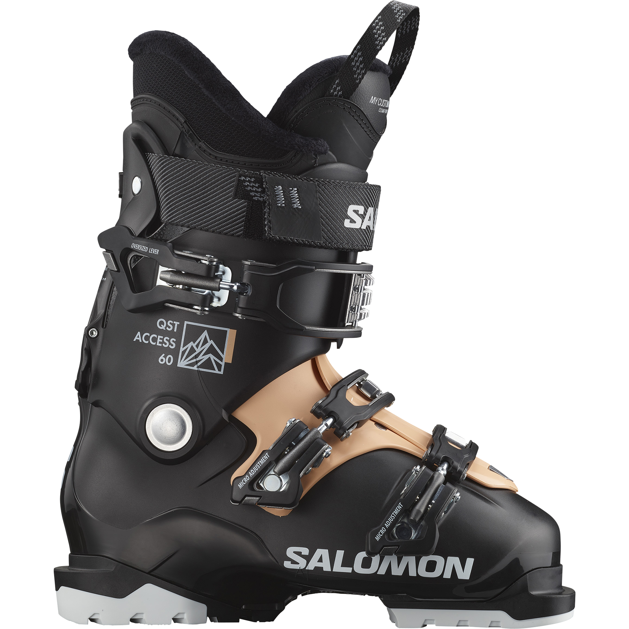 Buty narciarskie damskie Salomon QST ACCESS 60 W Black / Beach Sand / White to idealny wybór dla kobiet rozpoczynających swoją przygodę z narciarstwem lub preferujących rekreacyjną jazdę w pełnym komforcie. Model ten wyróżnia się wyjątkową miękkością, szeroką konstrukcją oraz łatwością użytkowania, dzięki czemu każdy zjazd staje się czystą przyjemnością. Zastosowany flex 60 zapewnia pełną tolerancję na błędy techniczne oraz swobodę ruchu, a grube pianki wewnętrzne gwarantują wrażenie otulenia stop i maksymalnego komfortu już od pierwszego założenia.