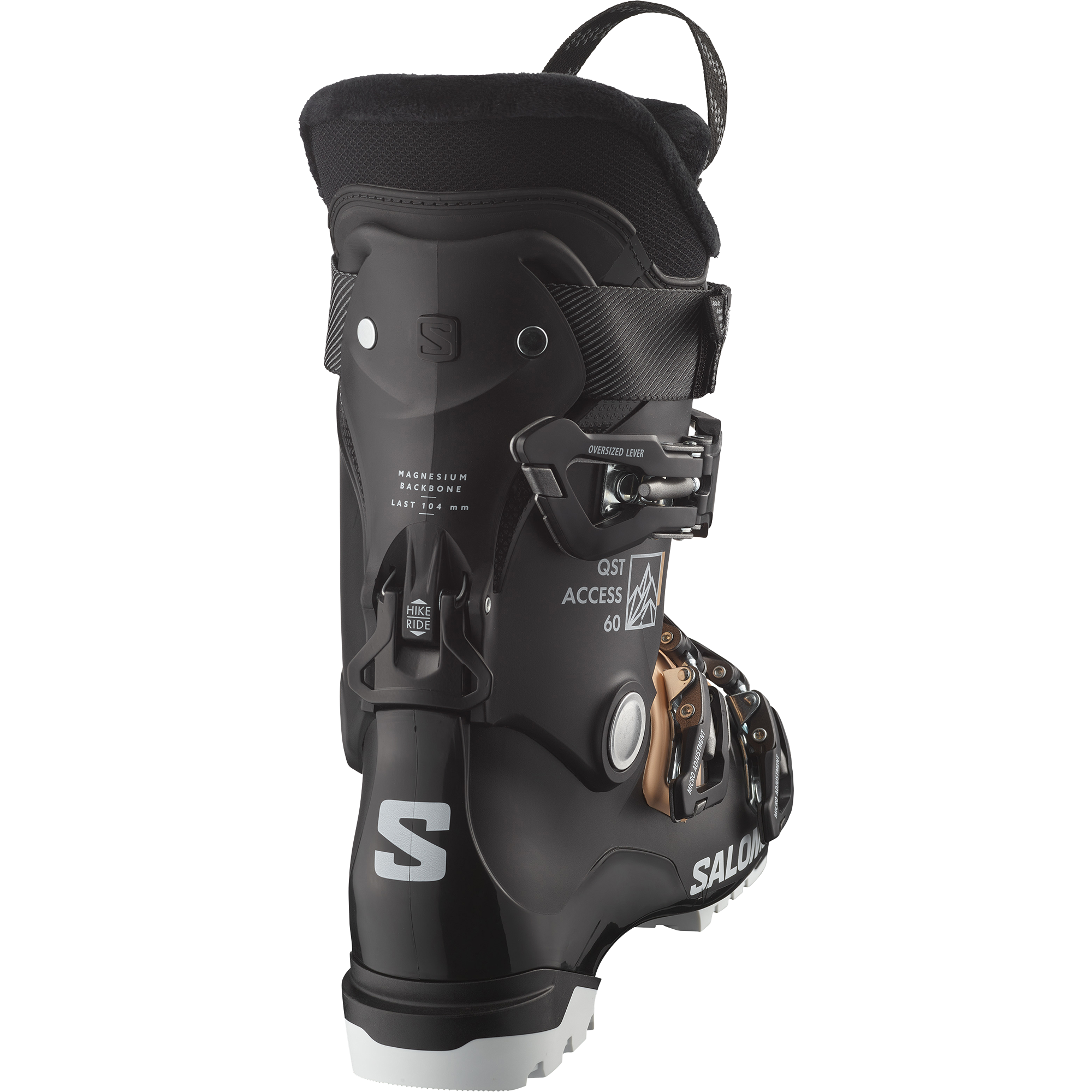 Model QST ACCESS 60 W oferuje szerokość skorupy 104 mm, co zapewnia dużo przestrzeni dla stopy i eliminuje ryzyko ucisku. Wewnętrzne pianki są wyjątkowo miękkie, dzięki czemu buty dają uczucie amortyzacji podobne do poduszki. But wewnętrzny nie jest termoformowalny, ale doskonale dopasowuje się do naturalnego kształtu stopy, oferując stabilność, wygodę i ciepło podczas jazdy.