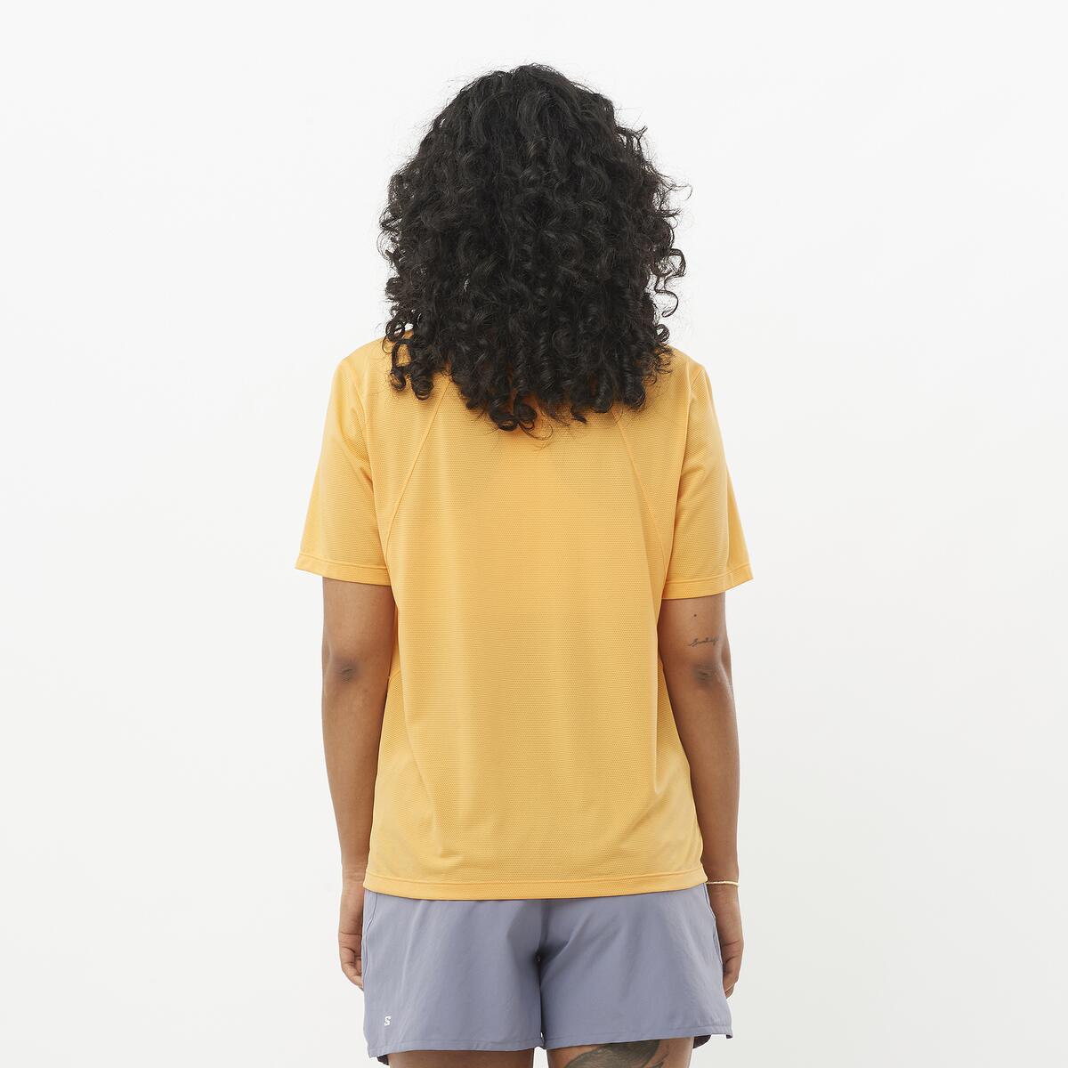 Koszulka biegowa damska Salomon SHAKEout CORE W WARM APRICOT – lekka i oddychająca odzież do codziennej aktywności
